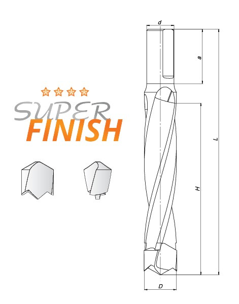 WNL02S.050.10.090.065L Wiertło nieprzelotowe lutowane WNL-02S 5/10x65 L=90 HM Lewy Super wykończenie / Super Finish