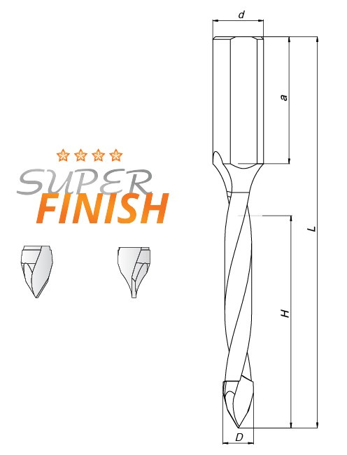 WPL01S.100.10.090.060R Wiertło przelotowe lutowane WPL-01S 10/10x60 L=90 HM Prawy Super wykończenie / Super Finish